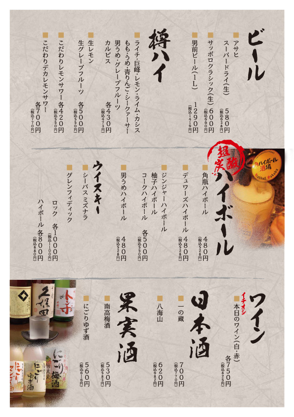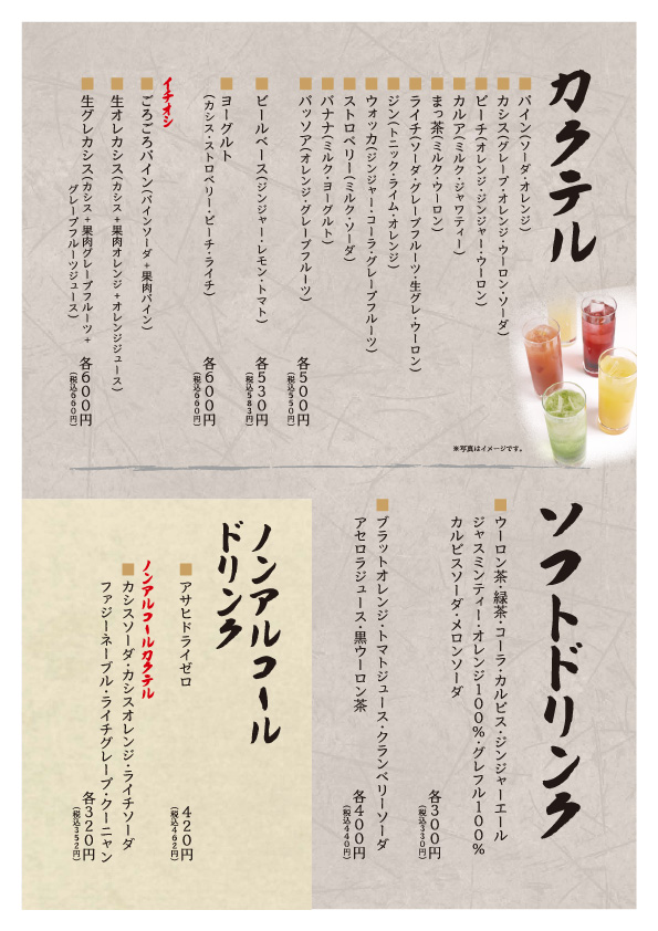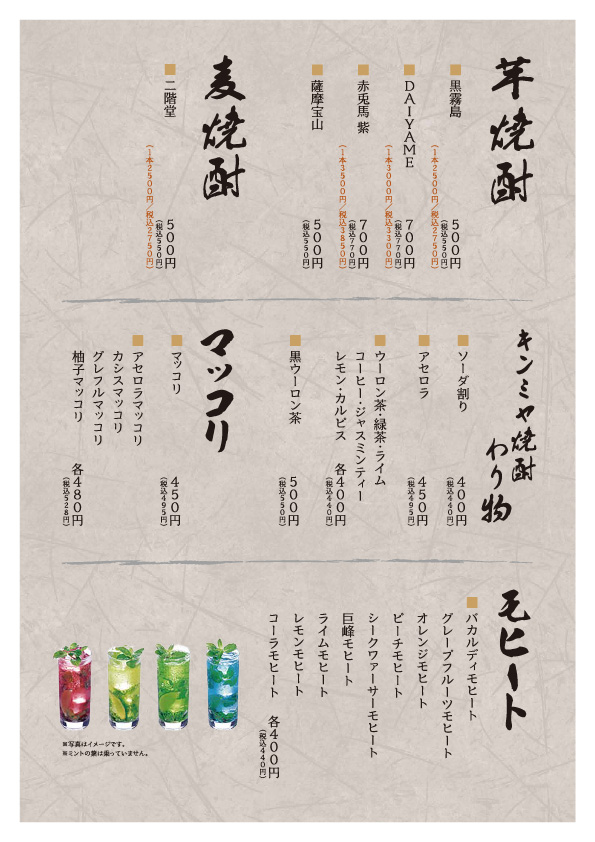| 営業時間 | 平 日 18:00〜24:00 日曜日 18:00〜22:00 |